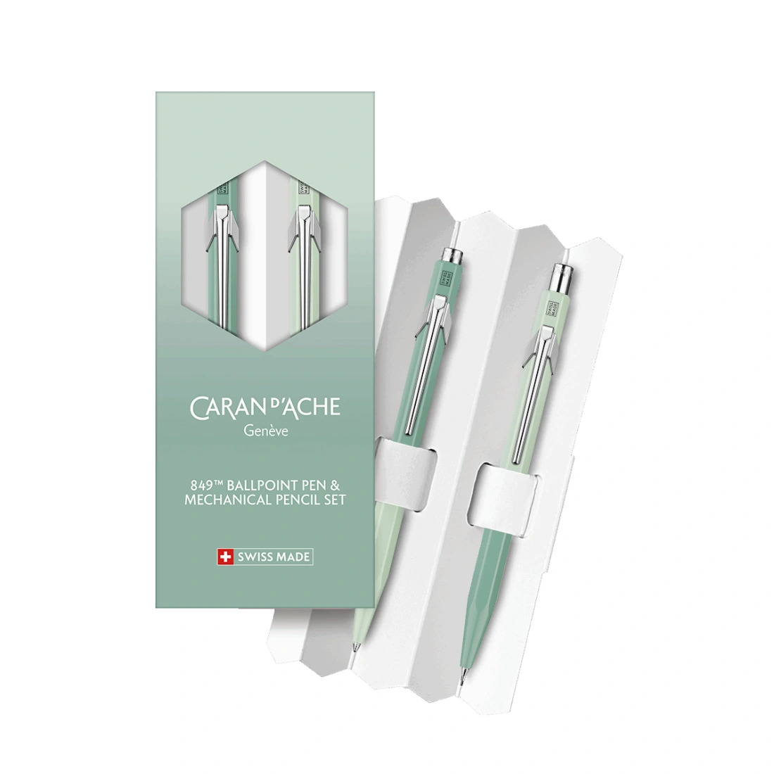 Caran d'Ache presenta, un set exclusivo compuesto por un bolígrafo y un portaminas de la serie 849™, inspirado en el enigmático encanto de los bosques envueltos en la niebla. Del verde pastel al verde salvia, este dúo captura la serenidad del sotobosque al amanecer, cuando la niebla invernal se funde con el follaje para crear una atmósfera suave y encantadora. Este armonioso degradado rinde homenaje a la serena belleza de la naturaleza, suspendida en el tiempo.