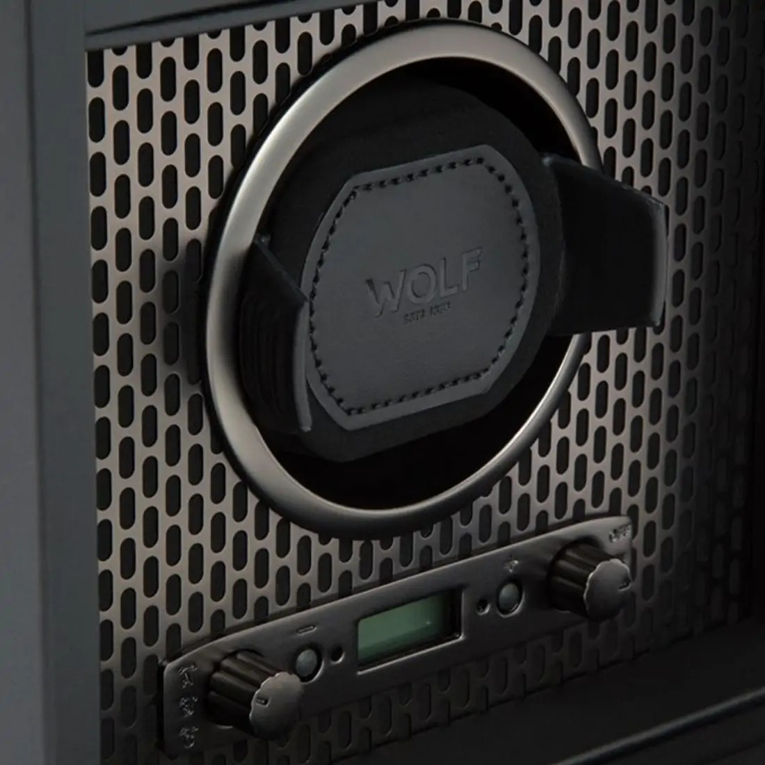 Innovación patentada: cada bobinadora WOLF cuenta el número exacto de rotaciones. Todas las demás bobinadoras estiman el número de rotaciones Brazalete dinámico con bloqueo: el brazalete dinámico con bloqueo patentado bloquea su reloj en el tambor giratorio para un ajuste seguro. Espuma de baja densidad para adaptarse a todos los tamaños de muñeca sin ejercer presión sobre la pulsera Opciones de rotación: retraso de inicio de 10 segundos. Se puede configurar entre 300 y 1200 TPD (vueltas por día). Duplique la cantidad de TPD seleccionando la configuración bidireccional Configuraciones direccionales: en el sentido de las agujas del reloj, en el sentido contrario a las agujas del reloj y bidireccional Configuración de reserva de energía: 6 a 72 horas en incrementos de 6 horas configuración de reserva de energía para acomodar relojes con reserva de energía, dando tiempo al reloj para liberar la energía almacenada antes de que comience el programa de cuerda Batería: opción para funcionar con alimentación de CA (adaptador universal incluido) o baterías D-Cell/litio (no incluidas) Almacenamiento: 1 módulo de cuerda, almacenamiento de reloj 1pc Material: cuero vegano