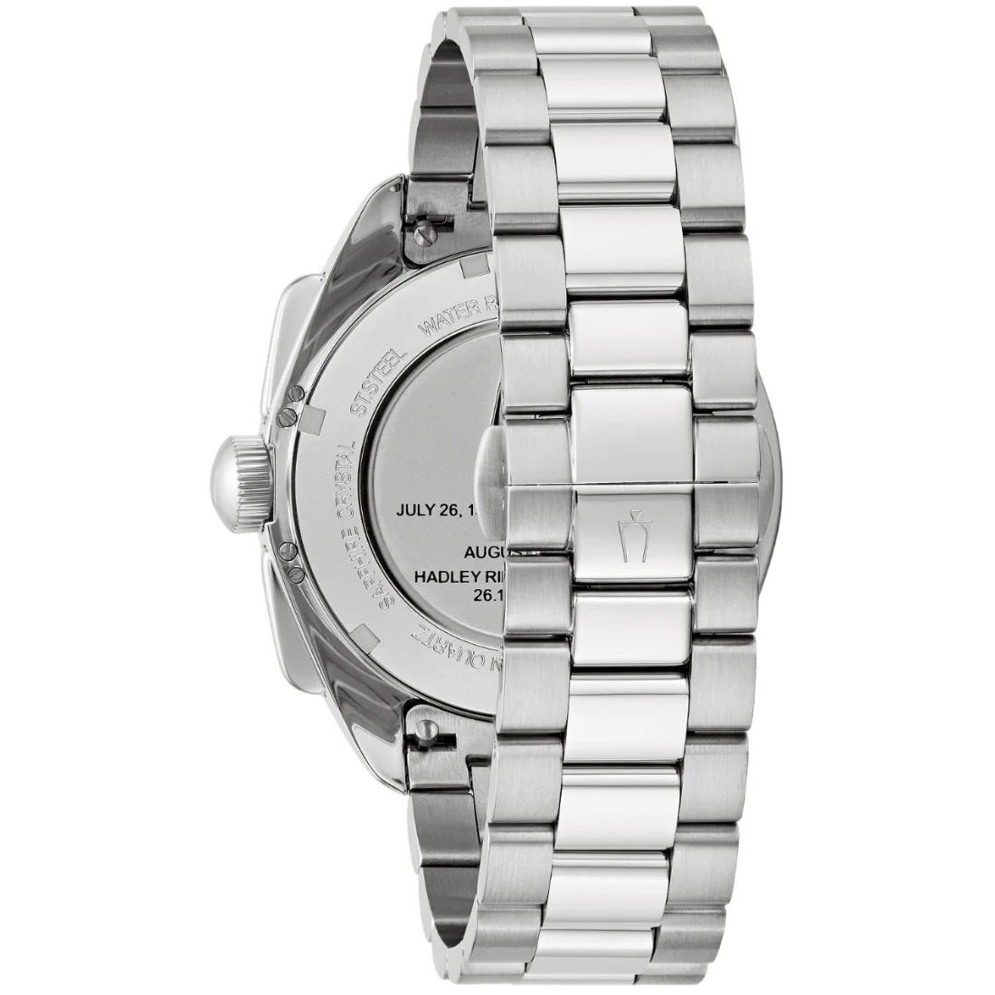 Reloj Bulova para Caballero colección Archivo Histórico Lunar Pilot. Edición especial Blood Moon. Réplica del reloj auténtico del Comandante de la misión del Apollo 15. Movimiento cronógrafo de cuarzo de alto rendimiento (HPQ) de 6 manecillas y 3 subcarátulas. Caja y brazalete realizados en acero inoxidable, broche desplegable de doble pulsador.