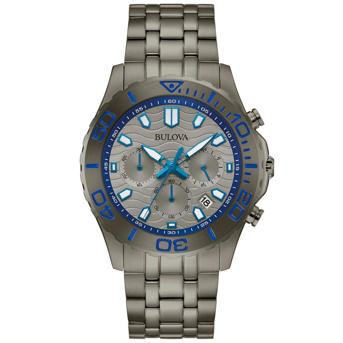 Reloj Bulova colección Classic Sport para Caballero. Movimiento cronógrafo de cuarzo de 6 manecillas y fechador. Caja y brazalete realizados en acero inoxidable.