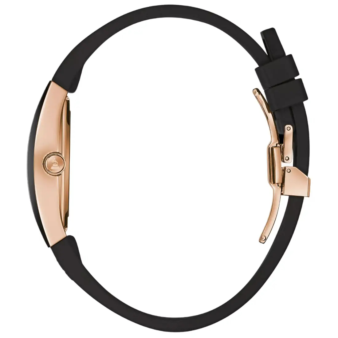 Reloj Bulova Edición Latin Grammy para caballero. Movimiento de cuarzo de 3 manecillas. Caja con moderno estilo tonneau realizada en acero inoxidable acabado PVD negro con detalles y corona en oro rosa. Carátula negra, indicadores y manecillas en oro rosa, logo de los Latin Grammy grabado en tapa y correa. Correa de caucho negra, broche desplegable. Cristal metalizado de borde a borde.