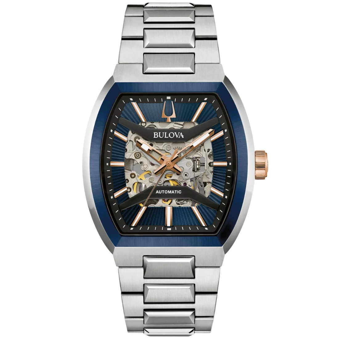 Este reloj Bulova para hombre de la colección Maquina ofrece un diseño atrevido y vanguardista, con una apertura central que revela el funcionamiento interno del movimiento esqueletizado automático de 21 joyas, también visible a través de un fondo de caja transparente, que tiene una reserva de marcha de 42 horas. Con su corazón mecánico y su forma moderna sin igual, este reloj Bulova para hombre ofrece una expresión de estilo única e individual.