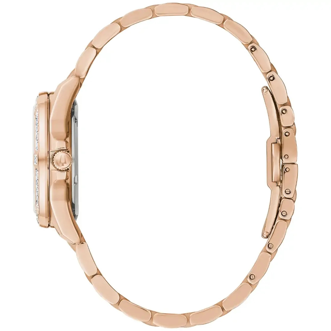 Material de la caja Acero inoxidable acabado PVD oro rosa 36 Diamantes incrustados a mano de forma individual en bisel superior