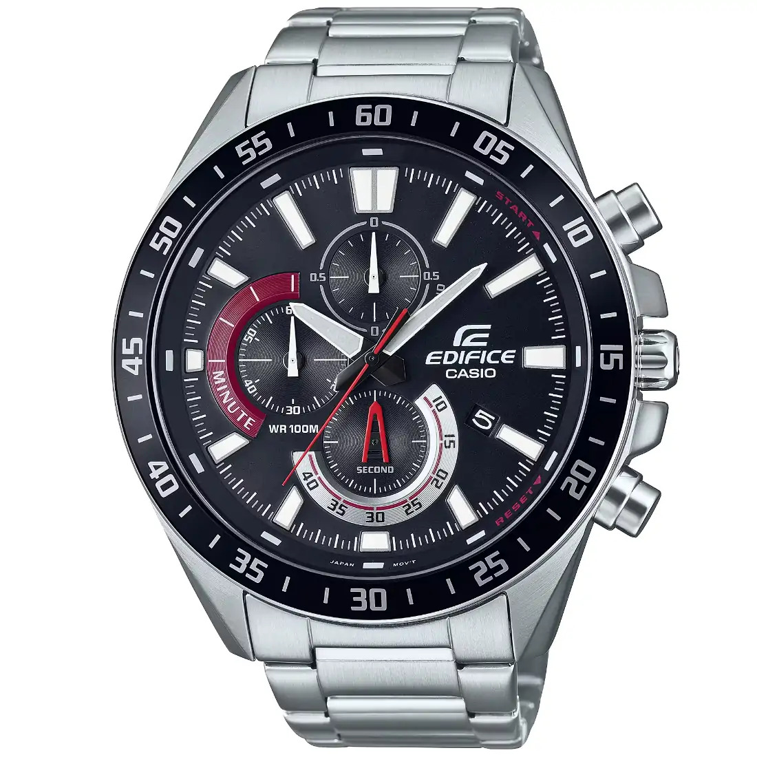 Cronómetro Precisión: h20 segundos por mes Funciones clásicas de reloj: Analógica: 3 manecillas (hora, minuto, segundo), 3 diales (1/10 segundos de cronómetro, minutos del cronómetro, segundos del cronómetro) Pantalla de fecha
