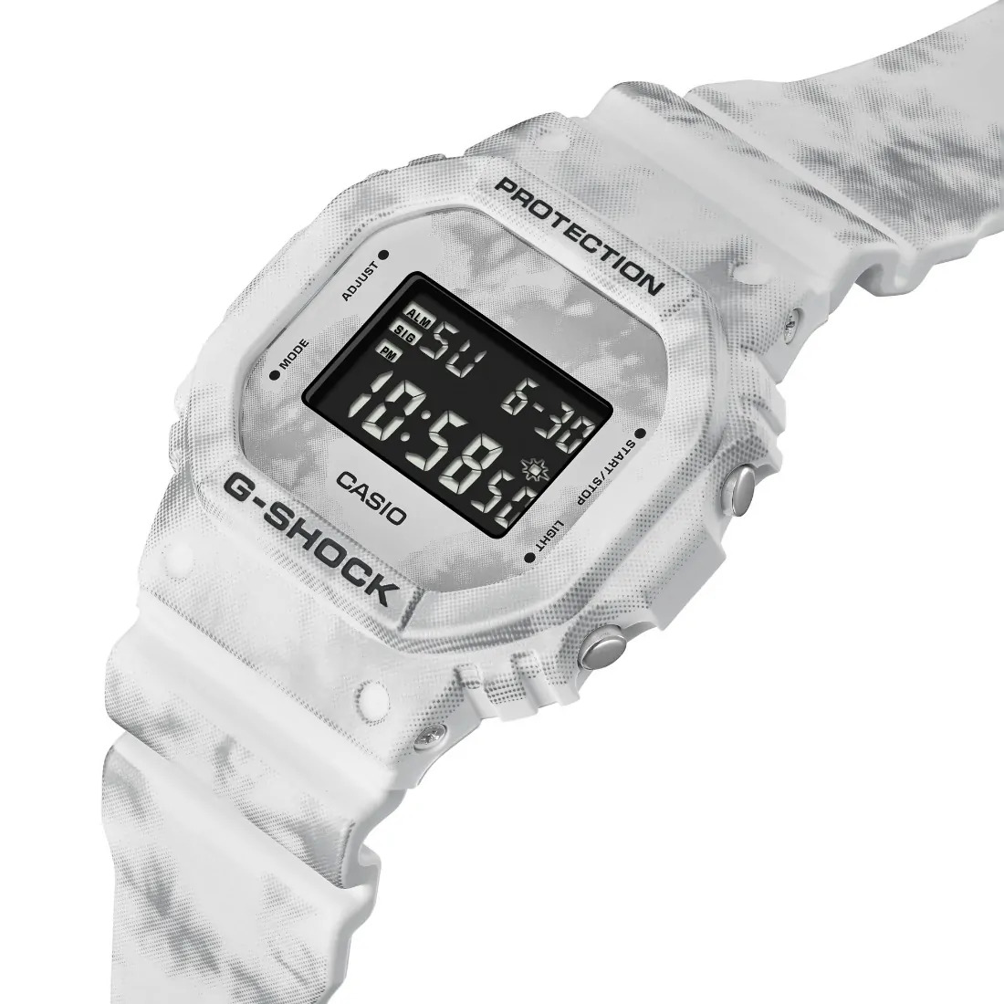 Los relojes Frozen Forest presentan copos de nieve digitales en un patrón de camuflaje sobre un blanco invernal para lograr una textura escarchada que es elegantemente moderna.