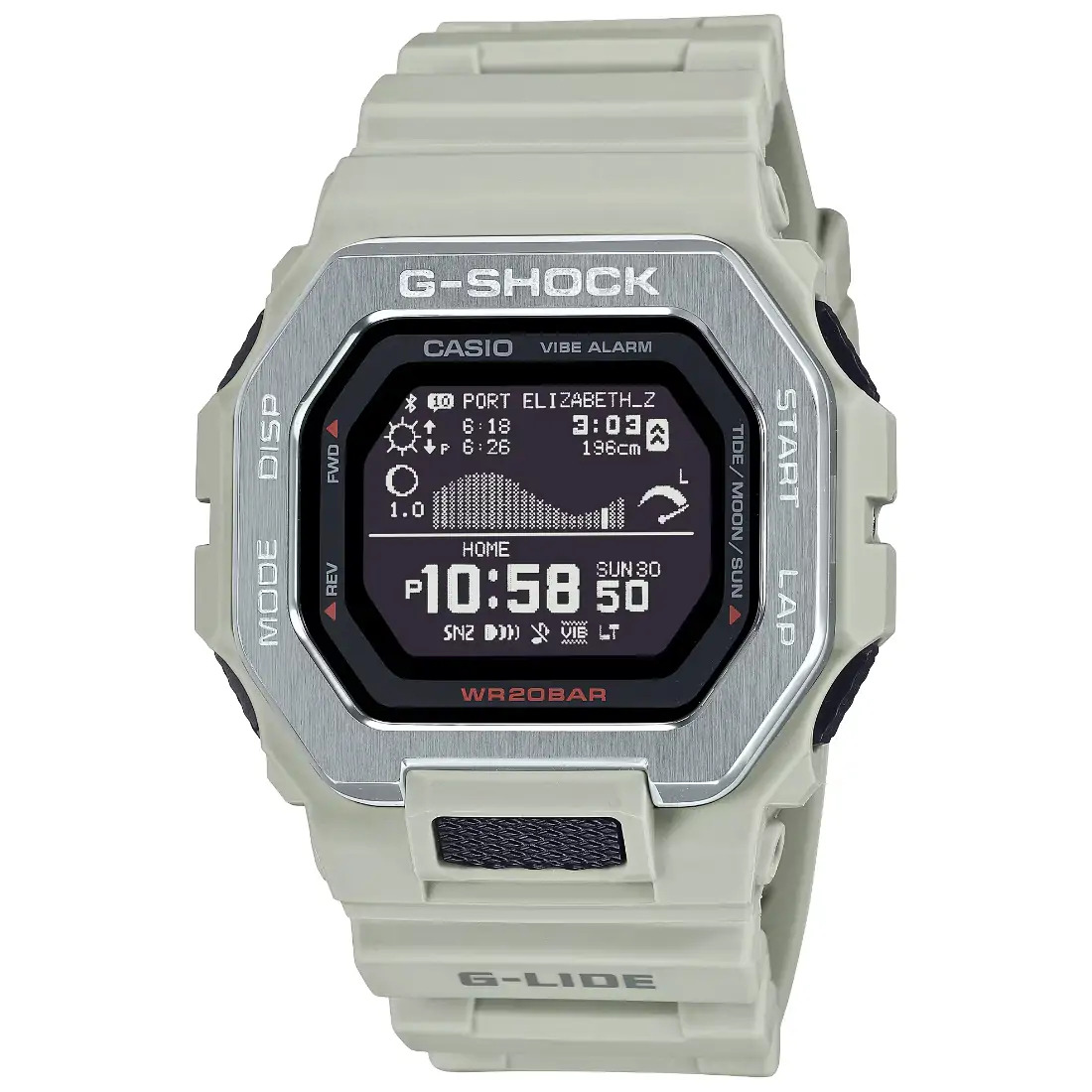 Hora mundial 38 zonas horarias Datos lunares (fases de la luna de la fecha específica, fases de la luna) Gráfico de mareas (nivel de marea para una fecha y hora específica Visualización de horas de salida y puesta del sol Cronómetro Temporizador con cuenta regresiva 4 alarmas diarias con función de despertador Luz de fondo LED (Super Illuminator) Blanco Calendario automático completo (hasta el año 2099) Función de silencio Función de ahorro de energía Precisión: h15 segundos por mes (sin la función Mobile Link) Formato de 12 y 24 horas Modo avión Funciones clásicas de reloj: horas, minutos, segundos, a. m./p. m., mes, fecha, día Creación del perfil del usuario Vibración activada/desactivada Vibrador Visualización diaria de datos de Life Log (conteo de pasos), visualización mensual de datos (distancia de carrera) Datos del entrenamiento (hasta 100 carreras, hasta 140 tiempos de vuelta por carrera) Tiempo transcurrido, distancia, ritmo, calorías quemadas