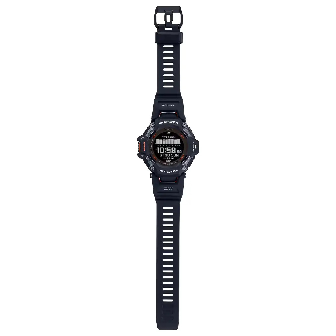 Tamaño de la caja (L× W× H): 59.6 × 52.6 × 19.4 mm Material de la caja/bisel: Resina de base biológica Peso: 63 g Correa de resina de base biológica Resistente a impactos Resistencia al agua de 200 m Recepción de la señal GPS: Recepción manual (información de posición, información de hora) Fuente de alimentación: Sistema de carga compatible con un cable exclusivo (se requiere un dispositivo con terminal USB tipo A) Funcionamiento a energía solar Análisis del entrenamiento Medición de la frecuencia cardíaca en la muñeca Medición del sueño Medición del nivel de oxígeno en la sangre* (Está destinada únicamente al cuidado general de la salud.) Medición del conteo de pasos Medición del tiempo de actividad Life Log: Conteo de pasos, gráfico de conteo de pasos Medición de la elevación del suelo Recordatorio de pasos Brújula digital Altímetro Medición de presión barométrica Medición de temperatura