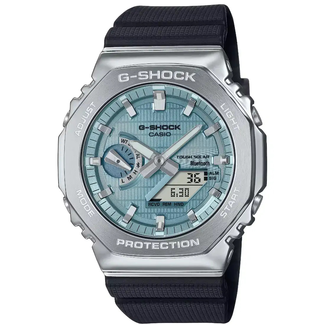 Hora mundial 38 zonas horarias Cronómetro Temporizador con cuenta regresiva 5 alarmas diarias Señal de hora Luz LED doble Blanco Calendario automático completo (hasta el año 2099) Función de silencio Función de ahorro de energía Indicador de nivel de carga de la batería Precisión: h15 segundos por mes (sin la función Mobile Link) Función de movimiento de agujas (las agujas se apartan para proporcionar una visión sin obstrucciones del contenido digital de la pantalla). Formato de 12 y 24 horas Cambio de visualización de fecha/mes Visualización del día (días de la semana seleccionables en seis idiomas) Funciones clásicas de reloj: Analógica: 2 manecillas (hora, minuto [la manecilla se mueve cada 20 segundos]), 1 dial (nivel de carga de la batería, modo) Digital: horas, minutos, segundos, p. m., mes, fecha, día