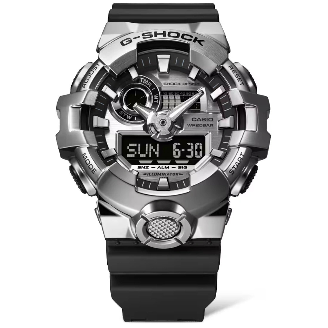 Hora mundial para 31 zonas horarias Cronómetro Temporizador con cuenta regresiva 5 alarmas diarias (1 alarma con función de despertador) Señal de hora Luz LED (Super Illuminator) Blanco Calendario automático completo (hasta el año 2099) Función de silencio Formato 12/24 Precisión: h15 segundos por mes Función de movimiento de agujas (las agujas se apartan para proporcionar una visión sin obstrucciones del contenido digital de la pantalla). Funciones clásicas de reloj: Analógica: 2 manecillas (hora, minuto [las manecillas se mueven cada 20 segundos]) Digital: horas, minutos, segundos, p. m., mes, fecha, día