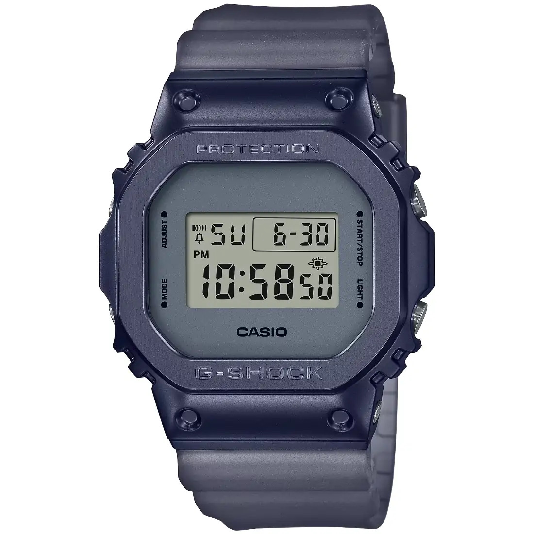 Tamaño de la caja (L× W× H): 49.6 × 43.2 × 12.9 mm Material de la caja/bisel: Resina/acero inoxidable Peso: 73 g Correa de resina Resistente a impactos Resistencia al agua de 200 m Fuente de alimentación: pila