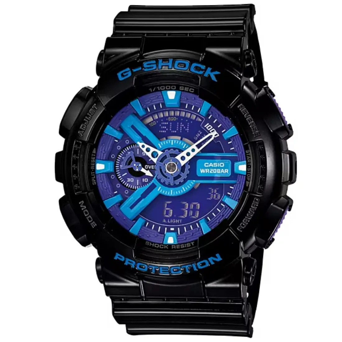 Una colección de combinaciones y modelos digitales en una amplia variedad de colores espectaculares. Las correas, los marcos de diales, los marcos de esferas, los botones, las manecillas, las pantallas LCD, los marcadores de hora y los marcos del reloj están decorados con colores, en algunos casos, combinados y, en otros, en contraste. El modelo GA-110 cuenta con resistencia magnética.
