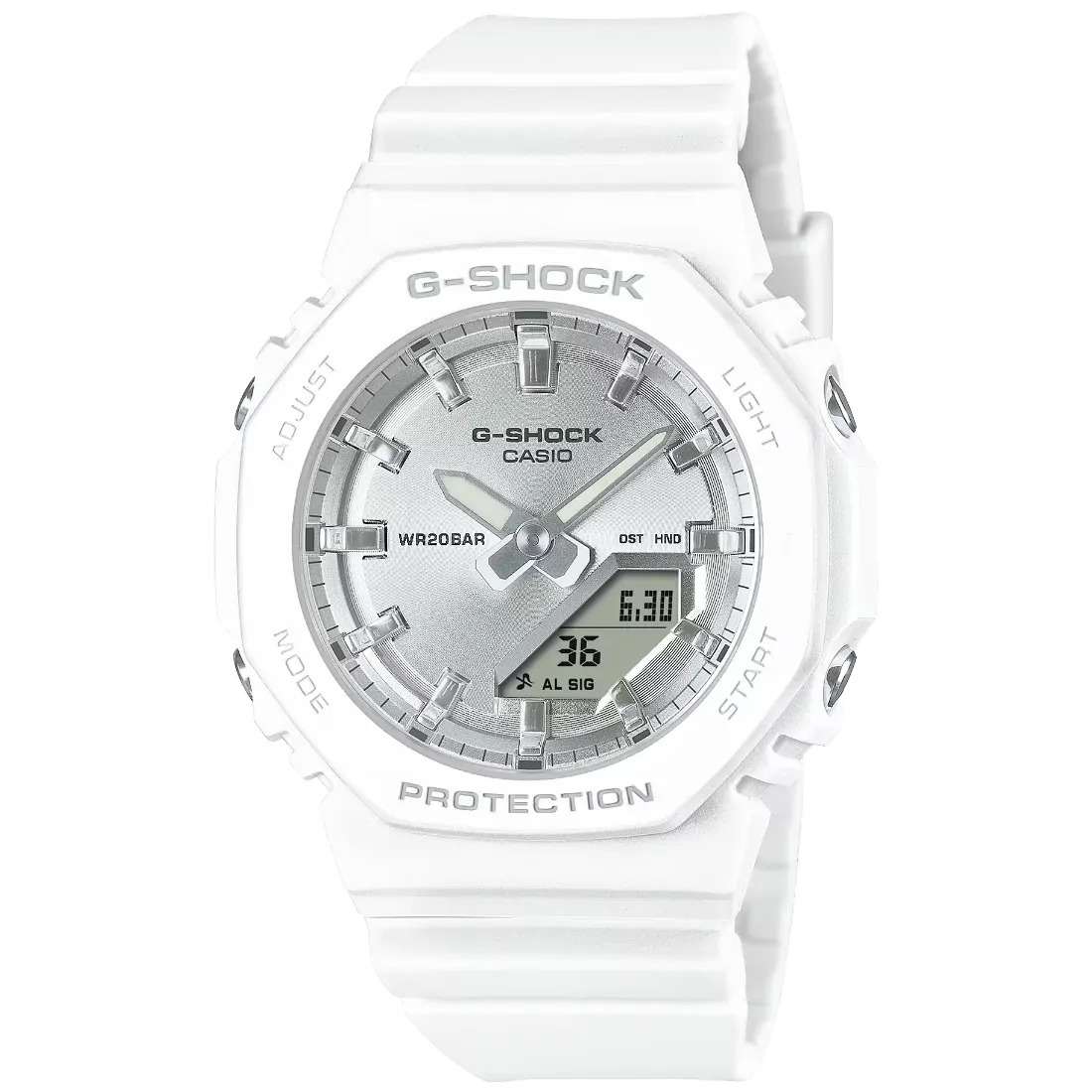 Hora mundial Cronómetro Temporizador con cuenta regresiva 5 alarmas diarias Señal de hora Luz LED doble Calendario automático completo (hasta el año 2099) Función de silencio Precisión: h15 segundos por mes Formato de 12 y 24 horas Función de movimiento de agujas (las agujas se apartan para proporcionar una visión sin obstrucciones del contenido digital de la pantalla). Funciones clásicas de reloj: Analógica: 2 manecillas (hora, minuto [las manecillas se mueven cada 20 segundos]) Digital: horas, minutos, segundos, p. m., mes, fecha, día