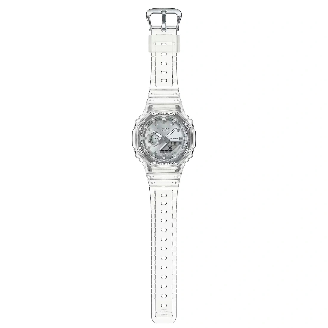Tamaño de la caja (largo × ancho × alto): 48.5 × 45.4 × 11.8 mm Material de la caja/bisel: Carbono/resina Peso: 51 g Correa de resina Resistente a impactos Estructura Carbon Core Guard Resistencia al agua de 200 m Fuente de alimentación: pila