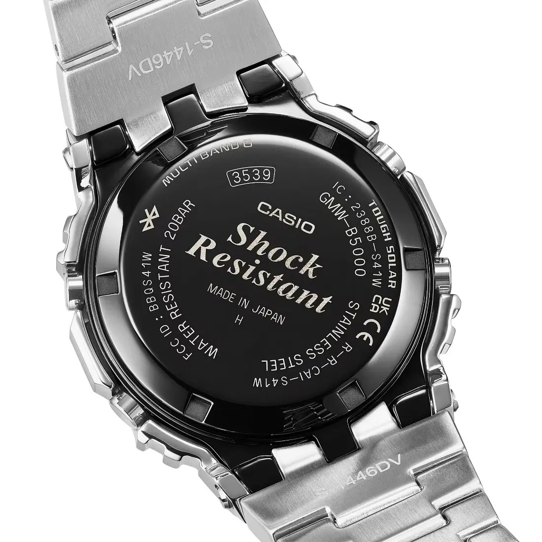 Continúe con el legado de G-SHOCK: siga la tradición con los colores originales del dial del modelo DW-5000C, el primer G-SHOCK, ahora en un reloj totalmente metálico. Lograr un reloj completamente metálico con la misma estructura original de G-SHOCK resistente a impactos no es fácil. Instalamos componentes amortiguadores elaborados con resina fina entre el bisel de acero inoxidable y la carcasa y empleamos una lengüeta de tres puntas para la conexión de la correa con el fin de dispersar los golpes en los tubos de conexión. La carcasa de acero inoxidable también cuenta con la misma construcción atornillada que el original para garantizar un sello hermético.