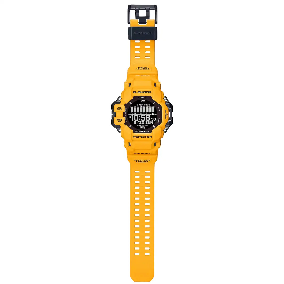 Conquiste terrenos exigentes y siéntase increíble con un reloj resistente tan audaz y activo como resistente. El RANGEMAN GPR-H1000 de la línea MASTER OF G se creó para funcionar incluso en los entornos más difíciles, y es un equipo para exteriores realmente resistente. Con una estructura resistente al barro destinada a evitar el polvo fino y la suciedad, está diseñado para soportar las condiciones más exigentes y las situaciones climáticas más adversas. Con la silueta grabada del personaje de gato montés del RANGEMAN en una correa, cada detalle de este reloj ejemplifica el espíritu de esta línea especializada MASTER OF G.