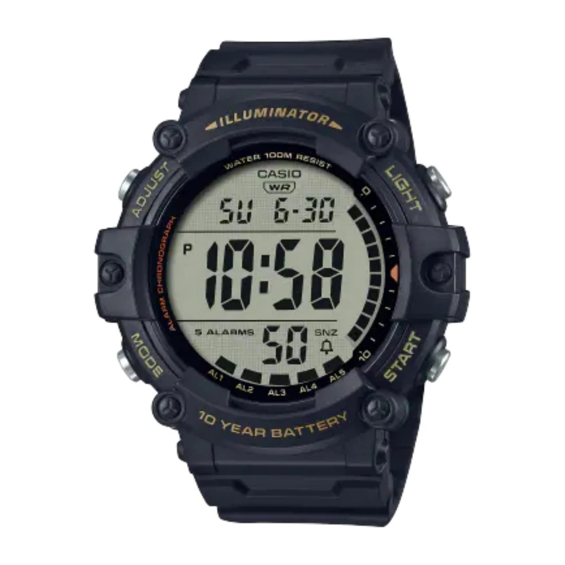 n nUn reloj con estilo y funcionalidad_ además de una correa extralarga para un ajuste más cómodo. Con una amplia pantalla LCD de alta visibilidad y fácil lectura_ estos relojes también vienen con funciones cotidianas útiles_ como cronómetro_ alarma y temporizador_ sin mencionar la resistencia al agua de hasta 100 metros y una batería de 10 años de la que no tendrá que preocuparse por su duración.