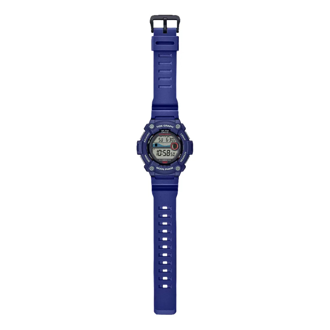 n n¡Amantes del agua_ tomad nota! El compañero ideal para los amantes de los deportes marinos. n nEl WS1300H-2AV comienza con un diseño exterior de resina azul duradero_ resistencia al agua de 100 metros y batería de 10 años de duración. A continuación_ agregue el gráfico de mareas_ los datos lunares y la luz LED incorporados para garantizar una lectura fácil incluso en la oscuridad_ para ofrecer todo lo que necesita un entusiasta de los deportes acuáticos_ al alcance de su mano. n nCon cronómetro_ temporizador y alarma_ estos relojes versátiles lo llevan sin problemas desde su hogar u oficina hasta la piscina o el mar.