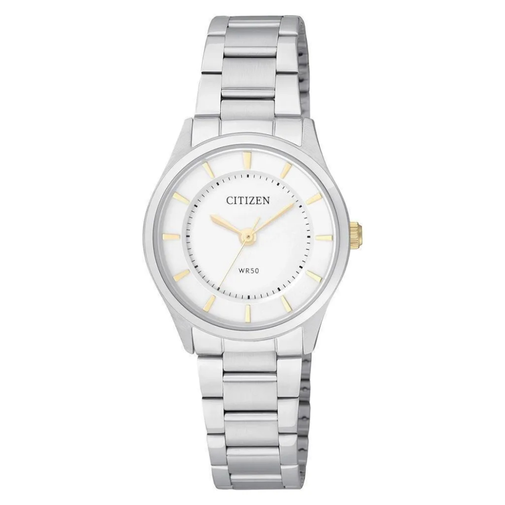 Cuarzo Un movimiento alimentado por batería. El cristal de cuarzo regula el tiempo logrando una precisión de 15 segundos al mes.