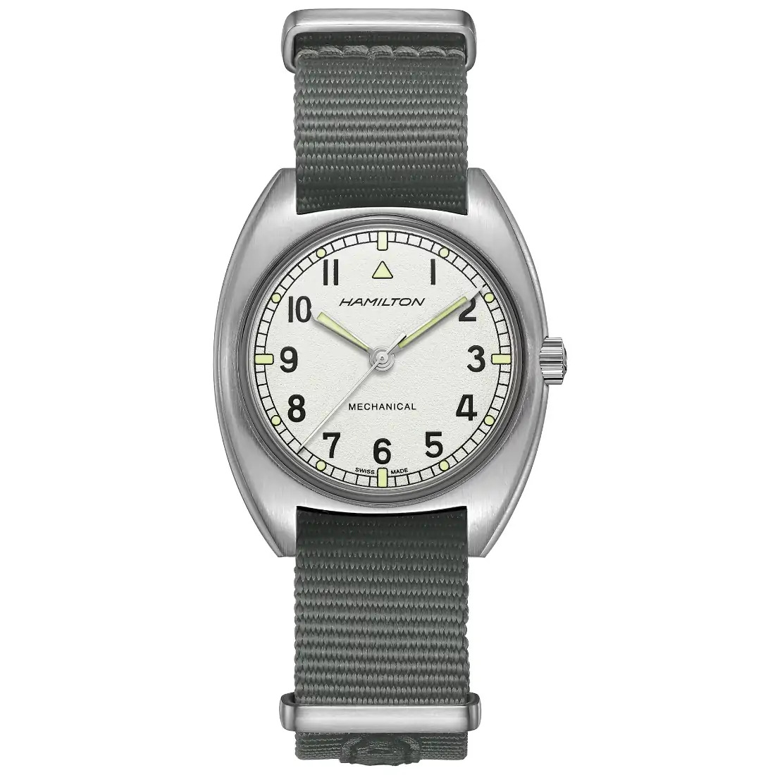 El H-50 es un movimiento mecánico. Con una reserva de marcha de 80 horas, este calibre de cuerda manual celebra los principios fundamentales de la relojería y garantiza la máxima fiabilidad hasta volver a darle cuerda.