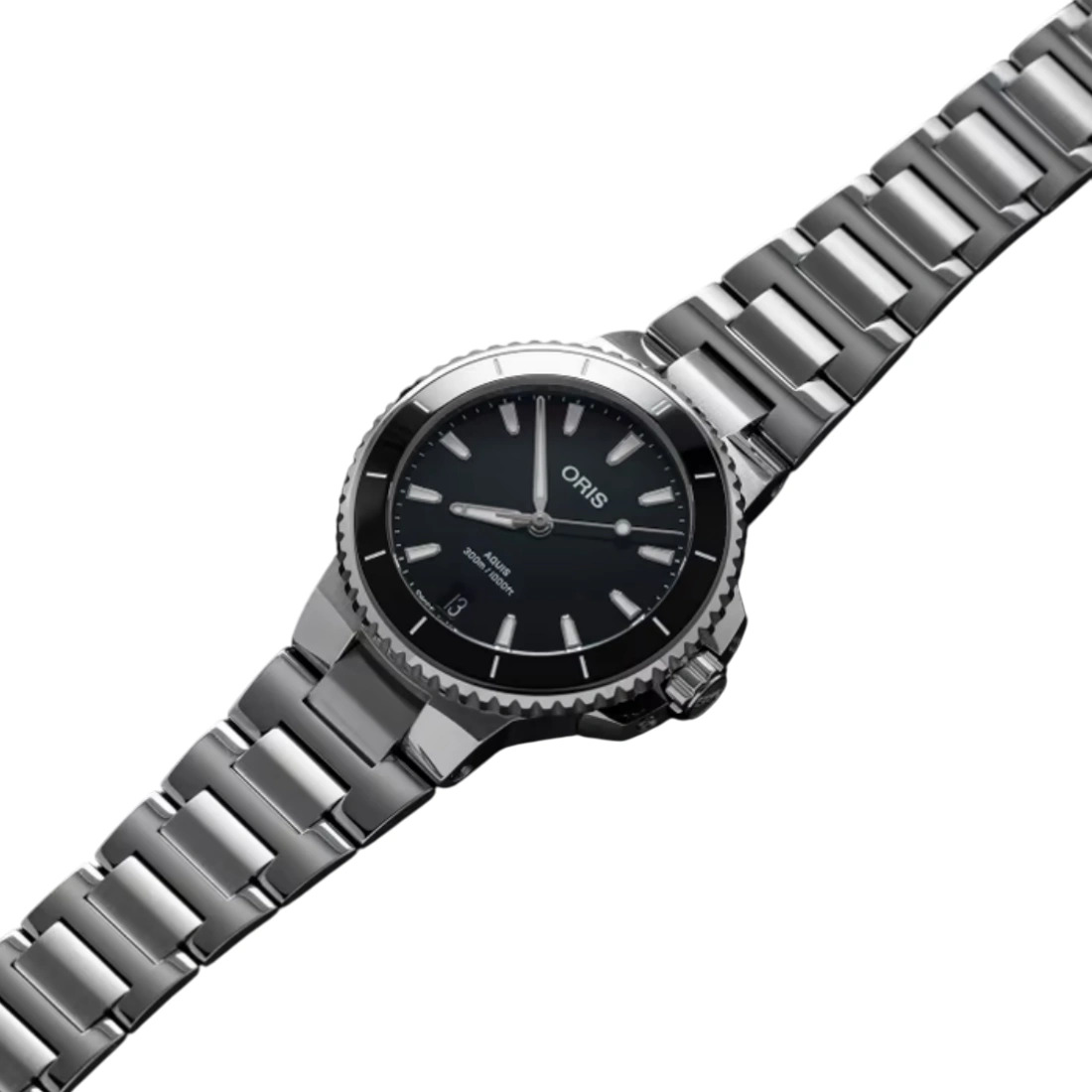 Caja: Caja de acero y cerámica con escala minutera. Zafiro, ambas caras abombadas, capa interior antirreflejos. Acero inoxidable, atornillado, cristal mineral transparente. Diámetro: 36.50 mm Hermeticidad: 30 bar Anchura entre cuernos: 19 mm