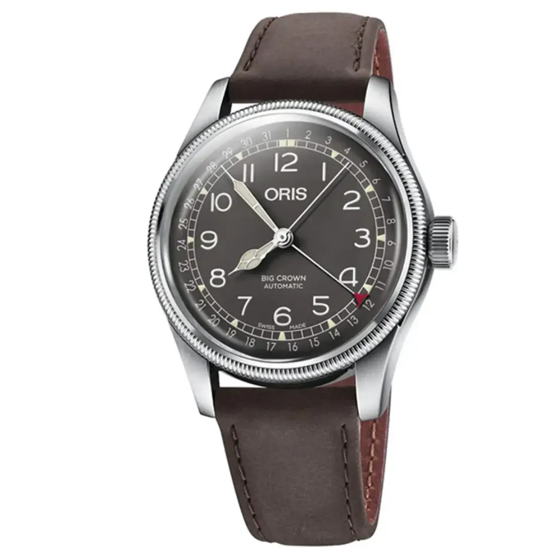 NÚMERO Oris 754, base SW 200-1 DIMENSIONES G 25.60 mm, 11 1/2??? FUNCIONES Agujas horas, minutos y segundos centrales, aguja fecha central, fecha instantánea, corrector fecha, excelente cronometrador y paro segundo REMONTE Remonte automático RESERVA DE MARCHA 41 h VIBRACIONES 28?800 A/h, 4 Hz RUBÍES 26