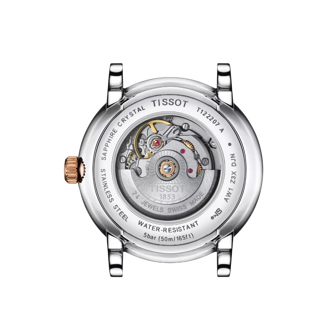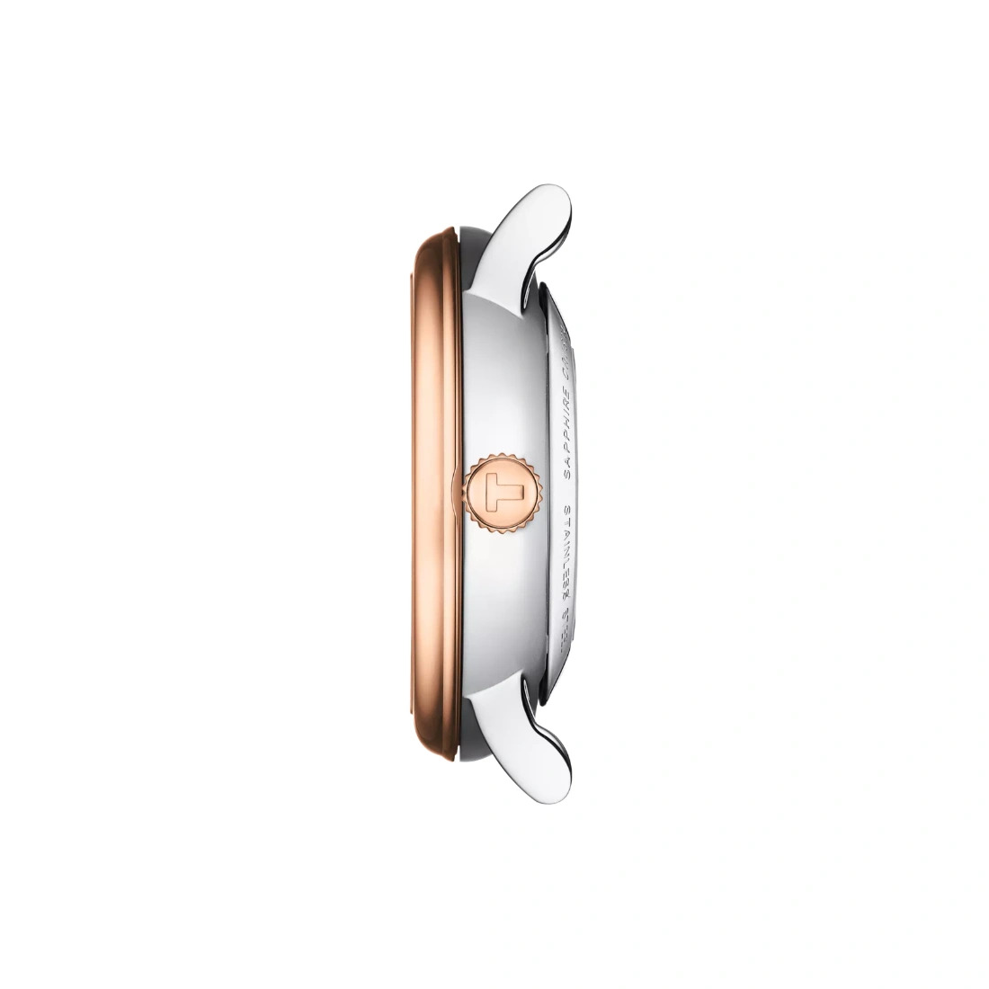 Correa/Brazalete Referencia de la correa/cadena: T605043959 Detalles de la correa: Acero Inoxidable Recubrimiento del brazalete: PVD Color de la correa: Gris, Oro rosa 5n Cierre: Cierre de mariposa con pulsadores
