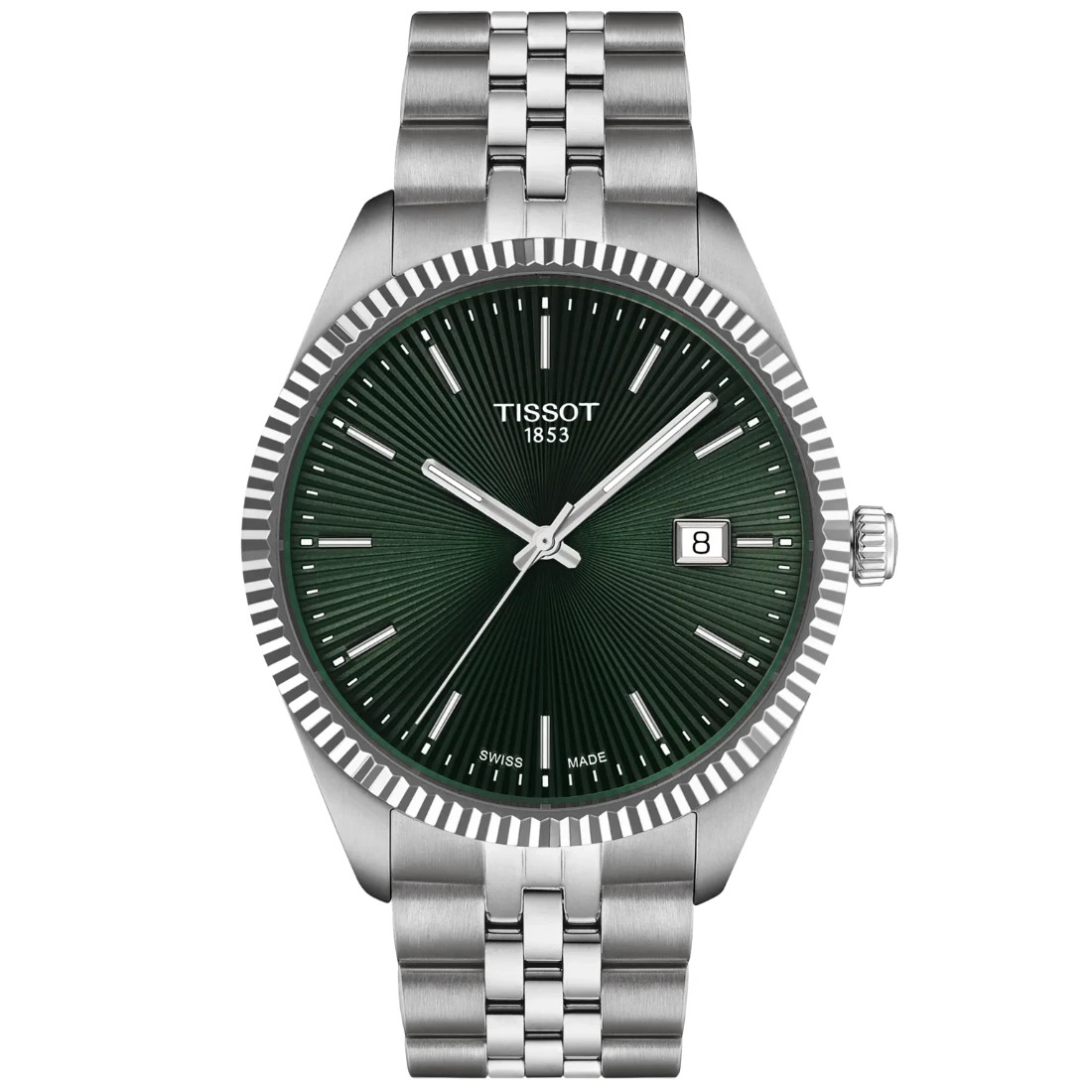 Este reloj está diseñado para elevar su estilo en los momentos más especiales. La esfera guilloché tradicional con rayos de sol refleja la luz maravillosamente, añadiendo profundidad y elegancia. El bisel estriado ofrece una sofisticada decoración representativa de la artesanía relojera tradicional. El brazalete intercambiable de cierre rápido ofrece la máxima versatilidad, permitiéndole cambiar fácilmente de look.